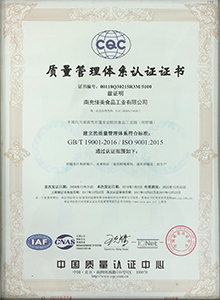 南充佳美于2008年按ISO 9000標(biāo)準(zhǔn)建立質(zhì)量管理體系,同時(shí)取得ISO 9001質(zhì)量體系認(rèn)證證書,并于2018年取得ISO 9001:2015質(zhì)量體系認(rèn)證證書。