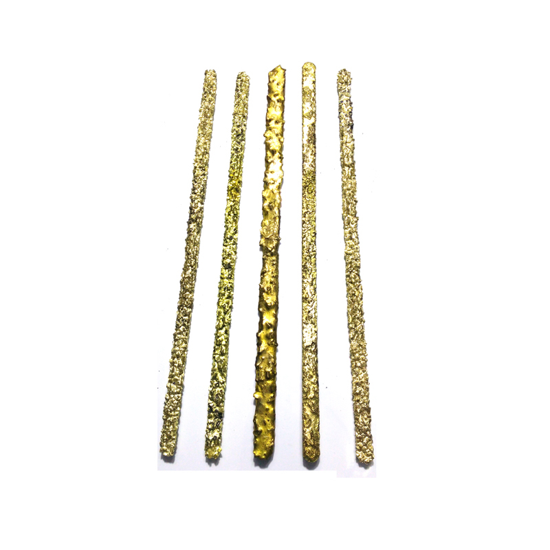 硬質(zhì)合金焊條,也叫YD型硬質(zhì)合金(燒結(jié)型)復(fù)合材料堆焊焊條,是以燒結(jié)碳化鎢顆粒為主成分,銅基合金為胎體材料,并外涂釬劑的一種堆焊焊條,硬質(zhì)合金顆粒硬度HRA達(dá)到89-91,主要用于堆焊石油、礦山,采煤、地質(zhì)、建筑等工業(yè)中一些嚴(yán)重磨損或兼有切削的工件。如石油工具銑鞋,磨鞋,扶正器,擴(kuò)孔器,鉆桿接頭,水力割刀,刮刀片,刨煤機(jī)刨刀,取芯鉆頭,打樁鉆頭,螺旋鉆頭等耐磨層的堆焊和修復(fù)??筛鶕?jù)客戶(hù)要求定做。